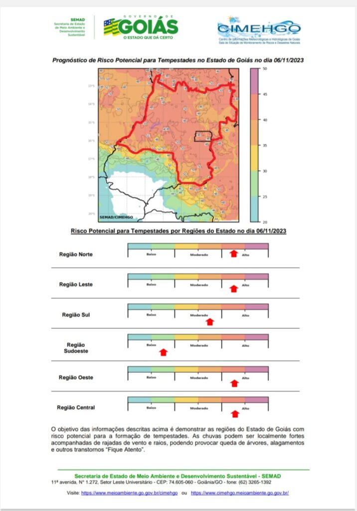 Prognóstico semanal para o Goiás: de segunda a quinta-feira a combinação calor e umidade vai propiciar pancadas de chuvas isoladas em diversas regiões do Estado, de sexta até o final de semana o tempo estará mais estável. Durante a semana as temperaturas permanecem elevadas.