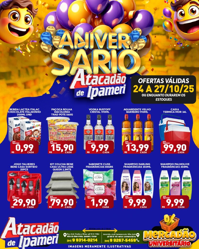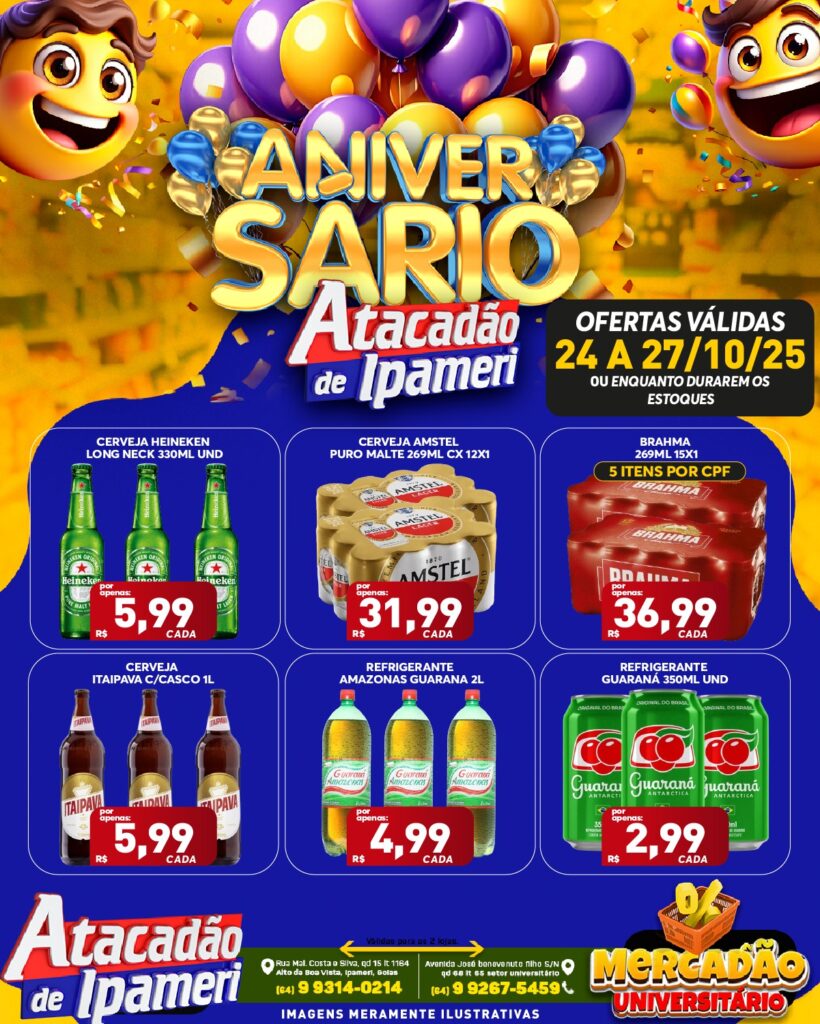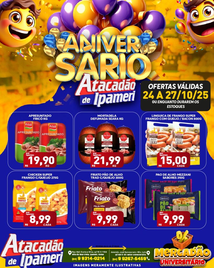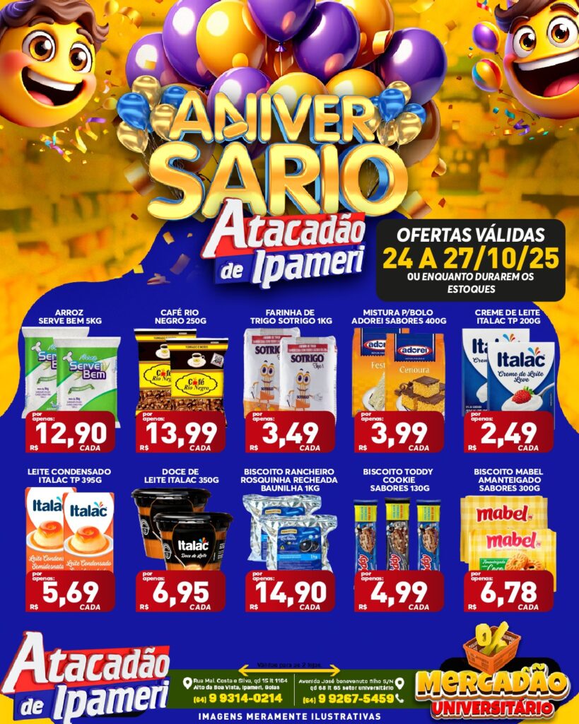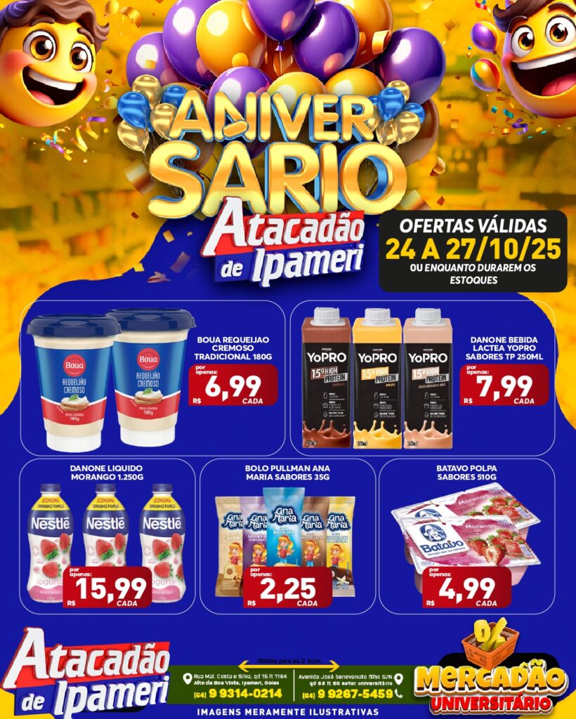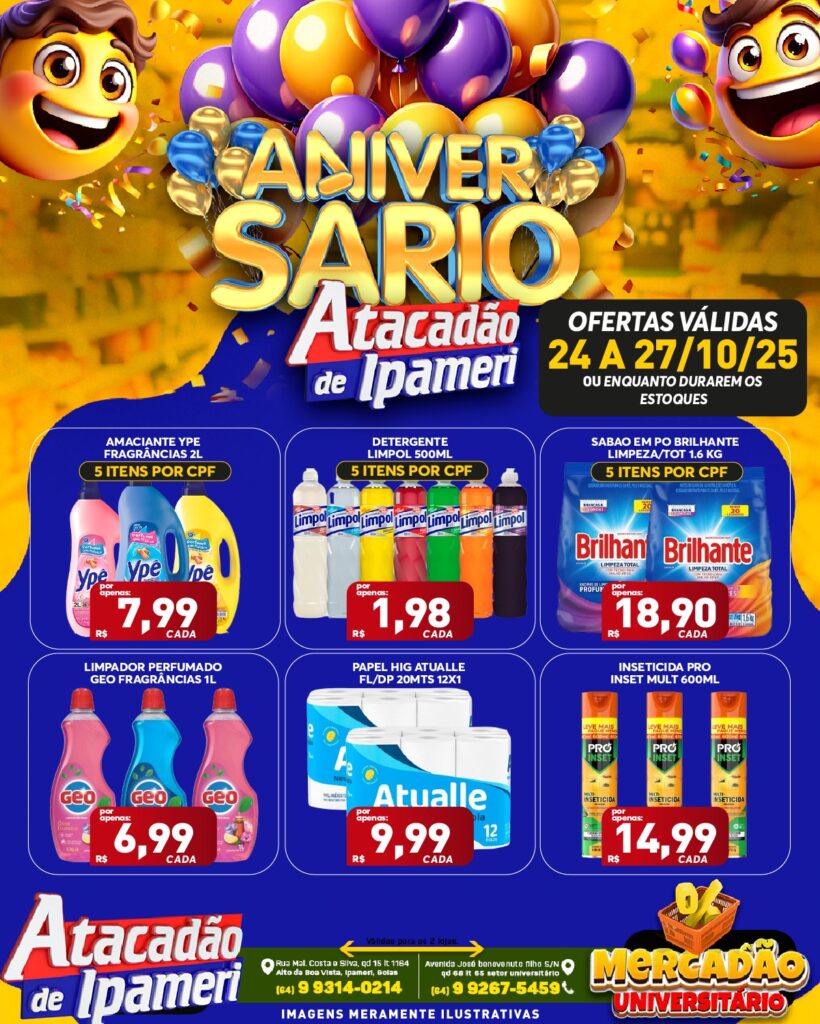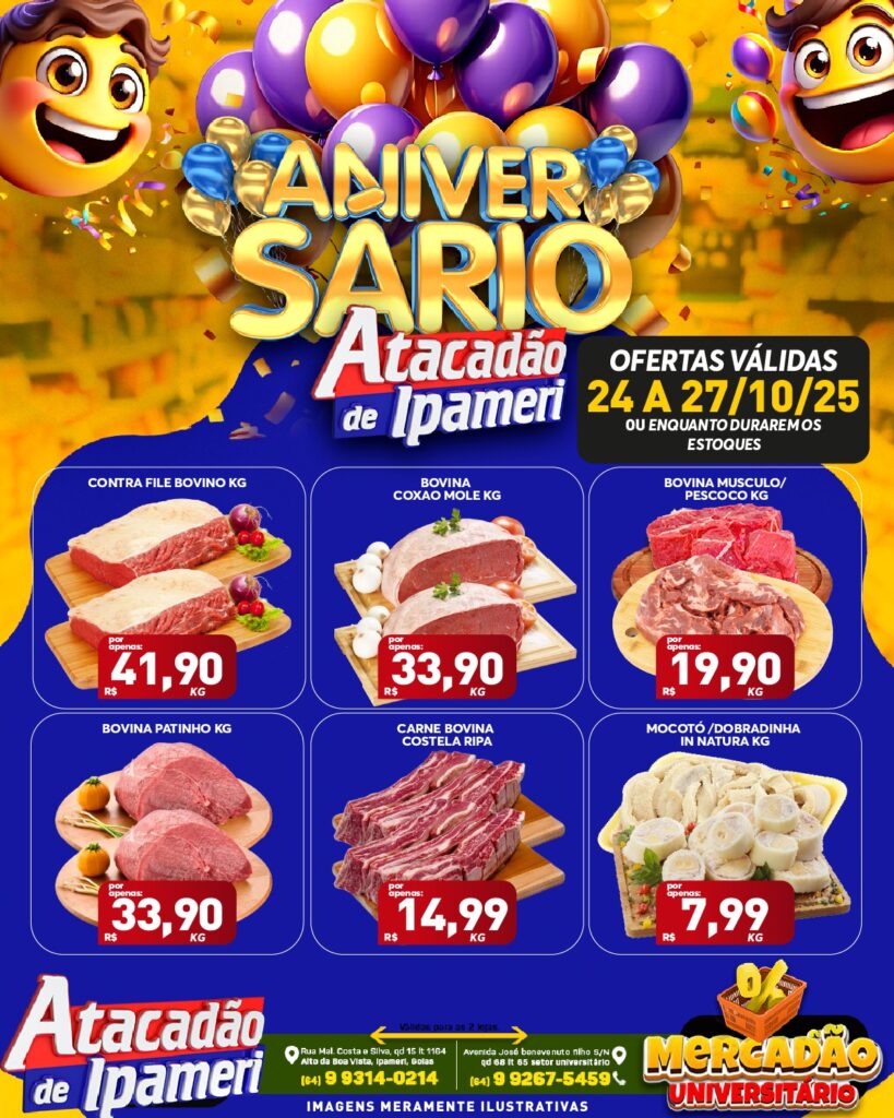 Ao Atacadão de Ipameri, nossos parabéns por acreditar na cidade, gerar empregos, movimentar o comércio e oferecer sempre o melhor. Que venham muitos outros anos de sucesso, crescimento e prosperidade!