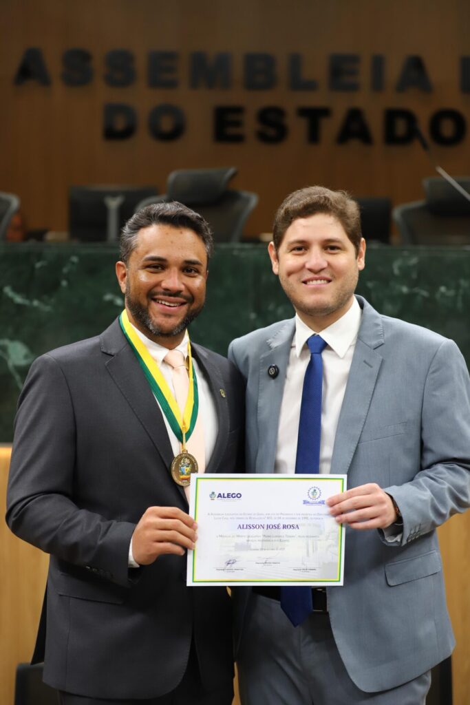 O presidente da Câmara Municipal de Ipameri, vereador Alisson Rosa, foi agraciado com a Medalha Pedro Ludovico Teixeira, uma das mais importantes honrarias concedidas pela Assembleia Legislativa do Estado de Goiás (Alego). A condecoração foi proposta pelo deputado estadual Lucas Calil, em reconhecimento aos relevantes serviços prestados por Alisson ao município e à comunidade ipamerina.