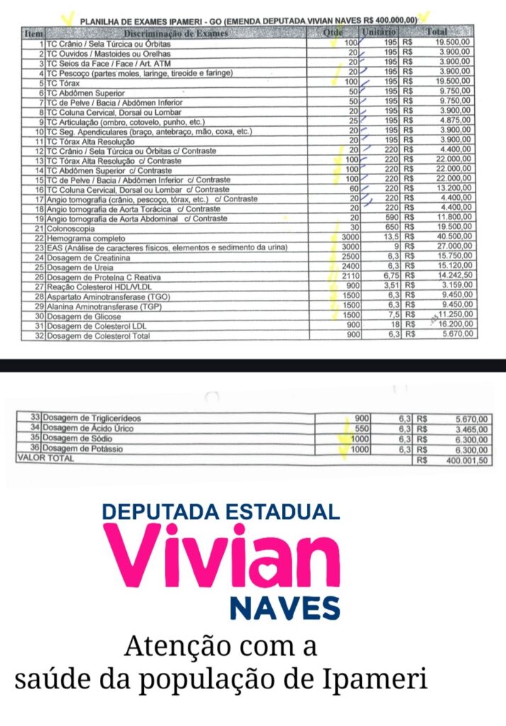 A população de Ipameri recebeu um importante reforço na área da saúde com a destinação de R$ 400 mil em emenda parlamentar feita pela Deputada Estadual Vivian Naves, recurso totalmente voltado ao custeio de exames médicos. A ação atende uma demanda histórica do município e contribui para reduzir filas, acelerar diagnósticos e ampliar o acesso da comunidade a procedimentos fundamentais.